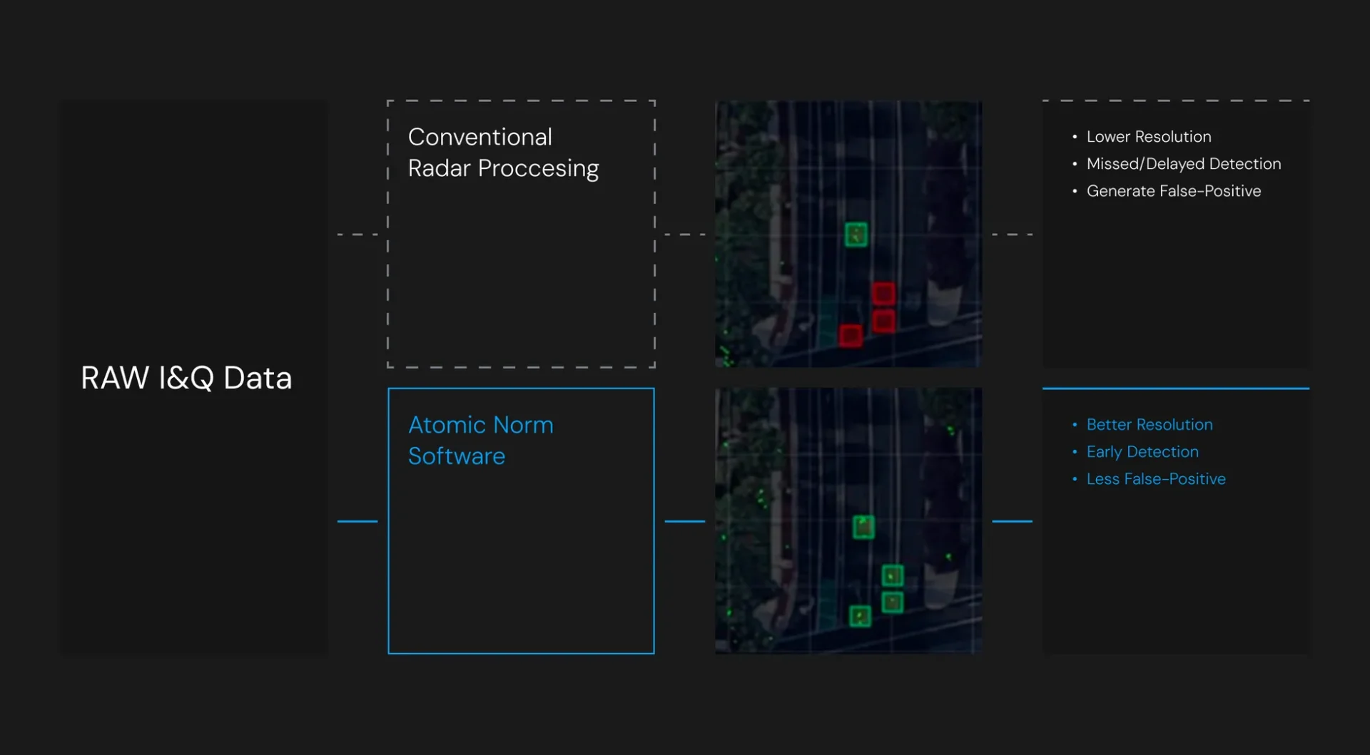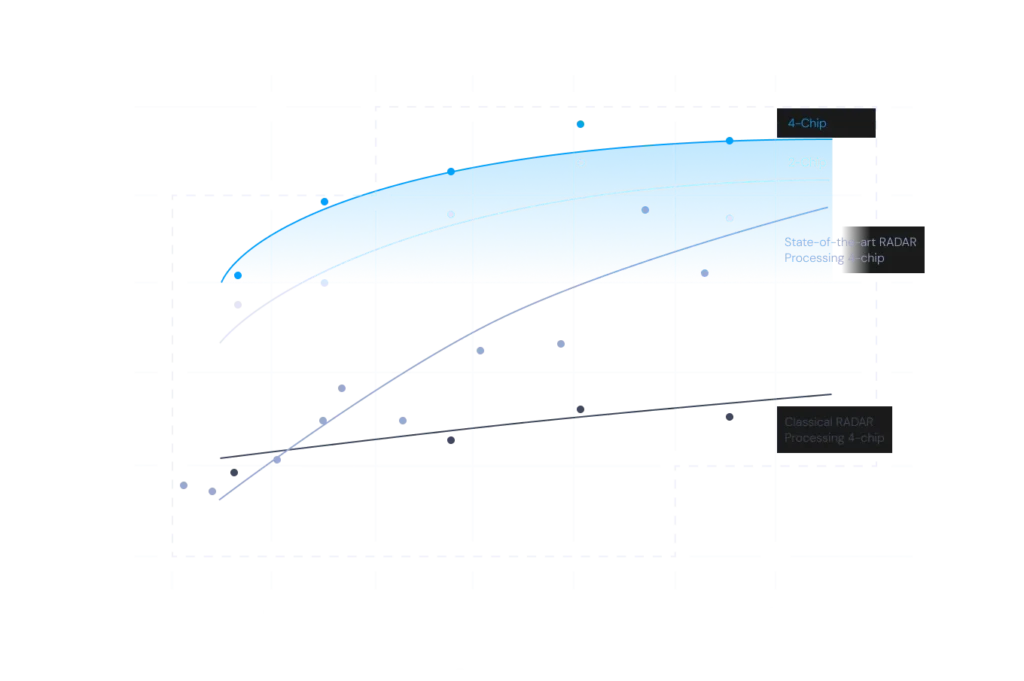 Differentiates objects at twice the distance of conventional radar using fewer sensor channels.